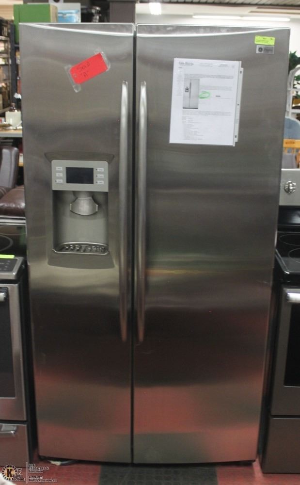 AND WATER DISPENSER MODEL # PSHS6YGXBDSS. MEASURES 36"X31"X69"H. APPLIANCE SCRATCH AND DENT. VIEWING IS ON SATURDAY 9-6. COMES WITH A 7 DAY WARRANTY