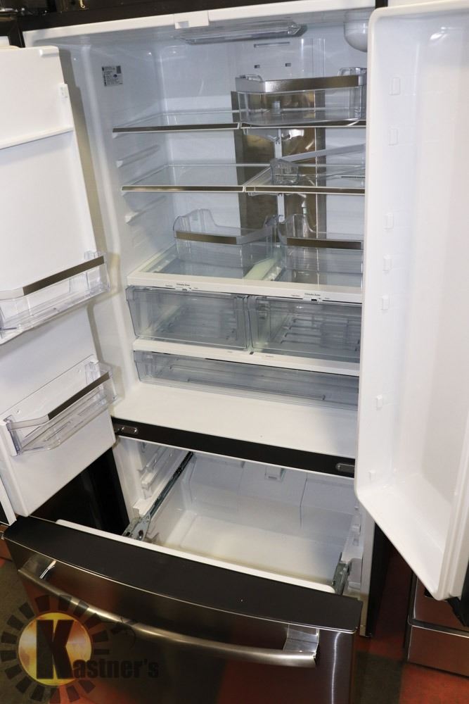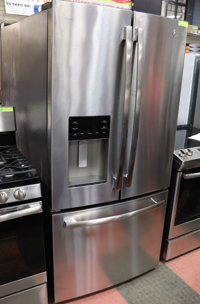 WITH BOTTOM SINGLE DRAWER FREEZER. COMES WITH FRONT WATER AND ICE DISPENSER MODEL NO: PYE18HSLGKSS S/N NO: VL305653 33.5" X 28" X 70.5"