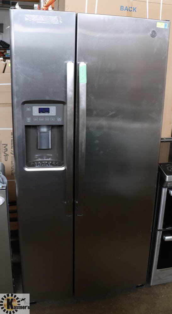 WATER & ICE DISPENSER. 33 X 32 X 70. MODEL #GSS23HSHKCSS, SERIAL #MM437731. APPLIANCES