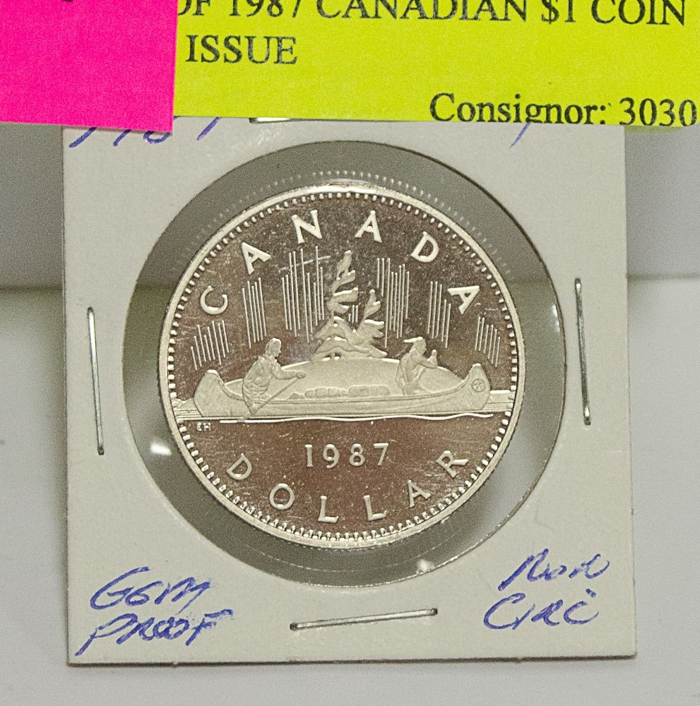 GEM PROOF 1987 CANADIAN $1 COIN NON CIRC ISSUE