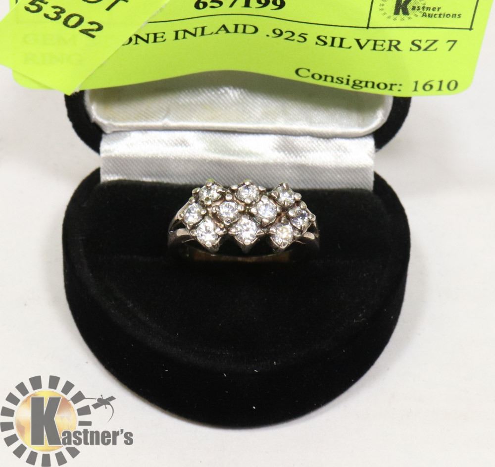 GEM STONE INLAID .925 SILVER SZ 7 RING