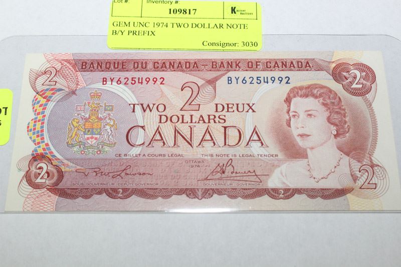 GEM UNC 1974 TWO DOLLAR NOTE B/Y PREFIX