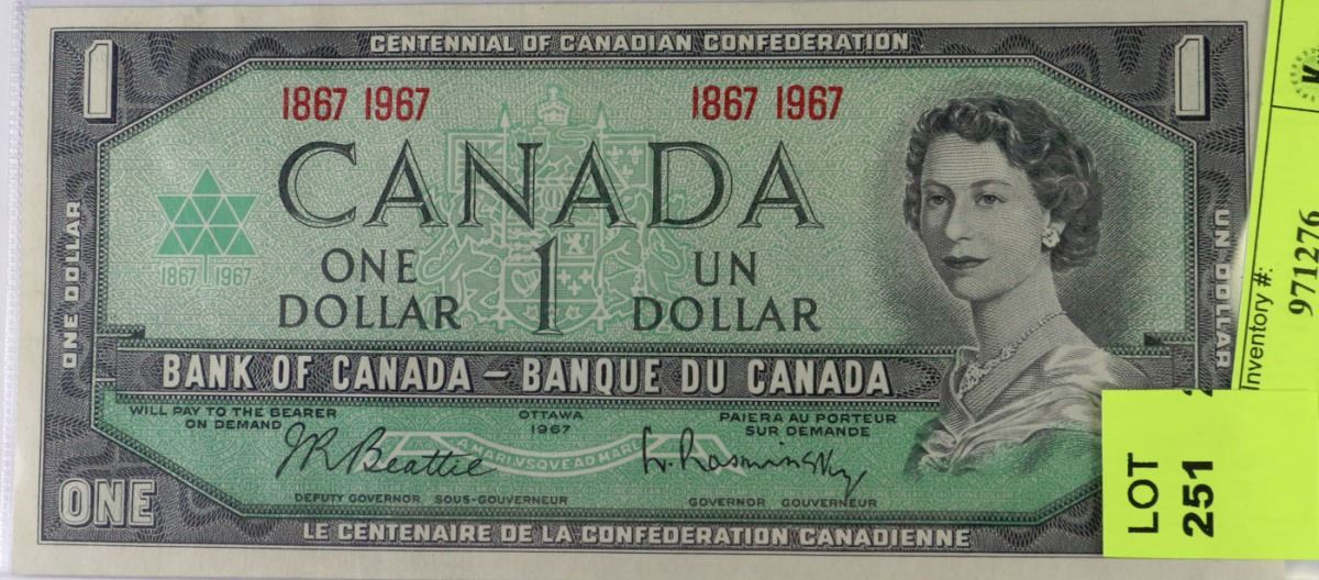 GEM UNC CANADIAN CENTENNIAL ONE DOLLAR BANKNOTE