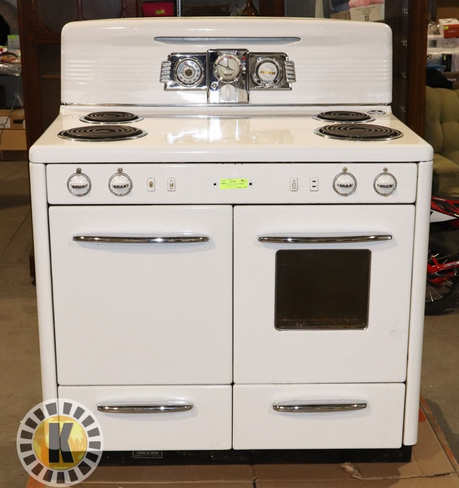 ELECTRIC. SIZE LXWXH 40"X42"X33". WOULD NEED REPAIRS TO BE WORKING STOVE.***HEAVY, CURRENTLY ON PALLET FOR ELECTRIC LIFT INTO A TRANSPORT VEHICLE***ITEM LOCATED IN LETHBRIDGE AB