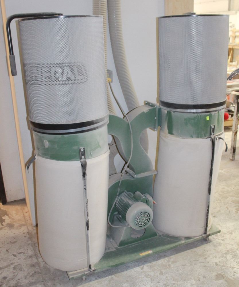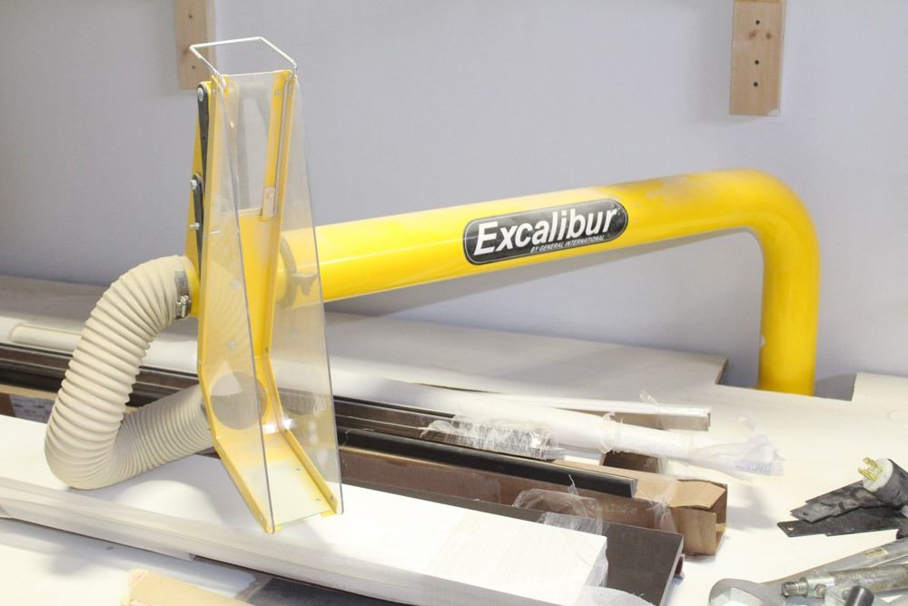 3HP, 2280CFM, 80-95dB, 83 GALLON CAPACITY, COMES WITH APPROX 80 FEET OF HOSE AND EXCALIBER OVERARM BLADE COVER SYSTEM FOR TABLE SAWS MODEL 10-210M1 60" X 22" X 70"