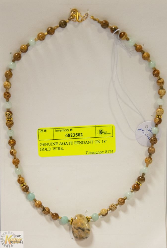 WITH GENUINE AMAZONITE & PICTURE JASPER BEADS. GOLD TONE ACCENT BEADS. S HOOK CLOSURE. ARTISAN SEMI PRECIOUS. ONE OF A KIND.