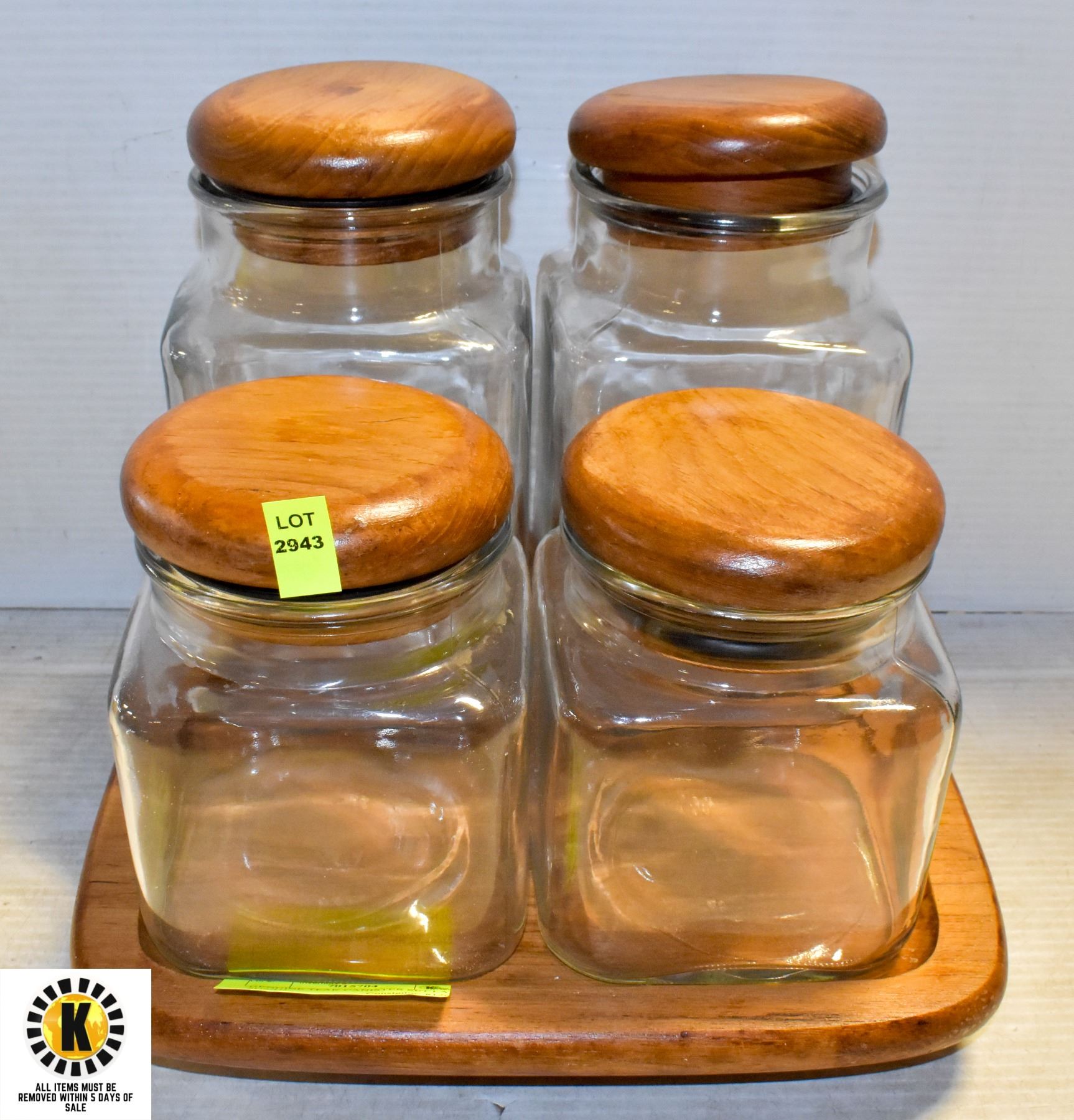 GENUINE TEAK CANISTER SET LAZY SUSAN