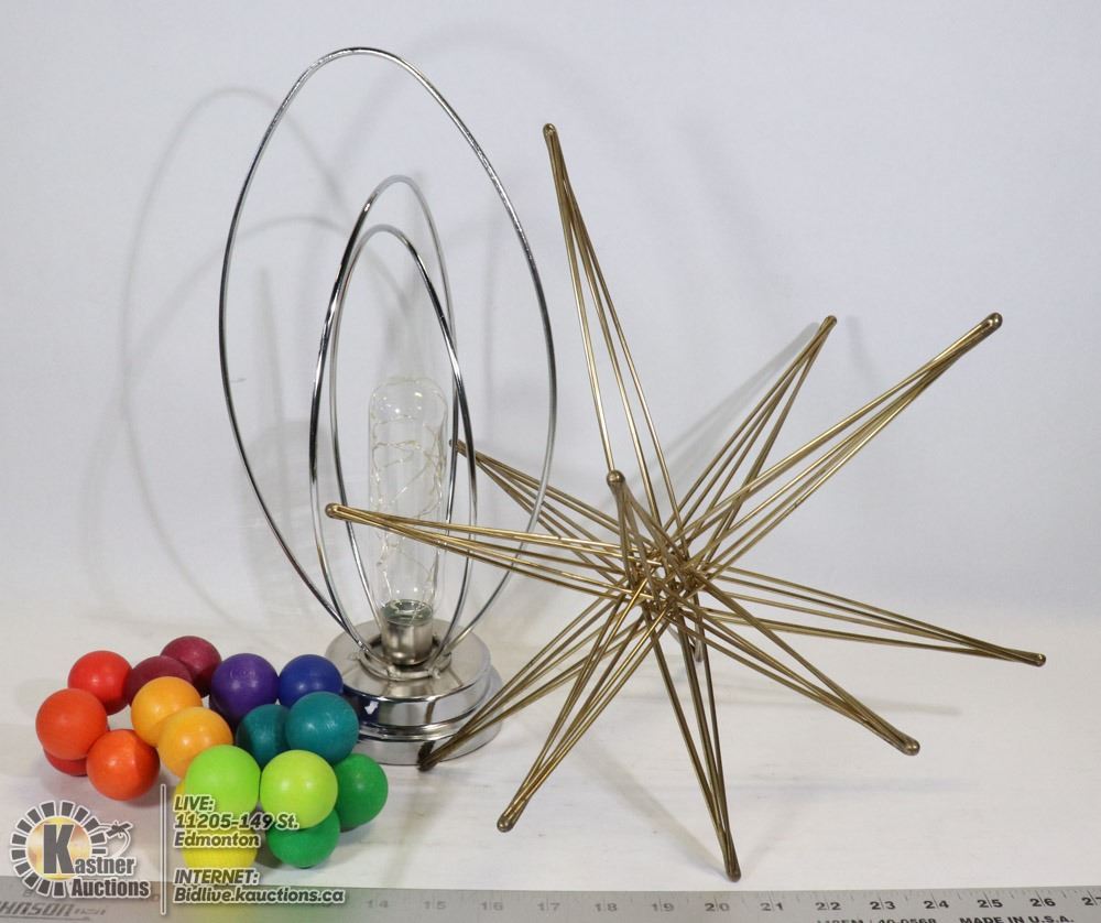 CAGE LIGHT-COLORED MOVEABLE BALLS AND WIRE SCULPTURE