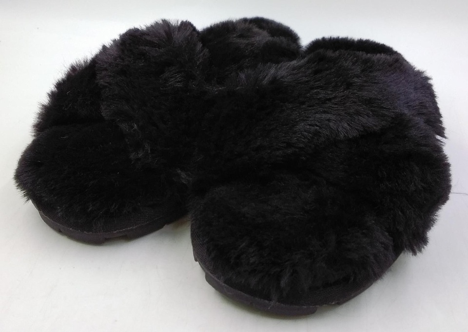 GEORGE BLACK FLUFFY SLIPPERS SIZE 5-6