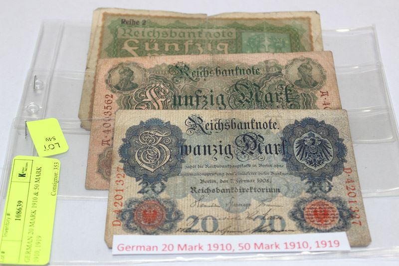 GERMAN 20 MARK 1910 & 50 MARK 1910, 1919