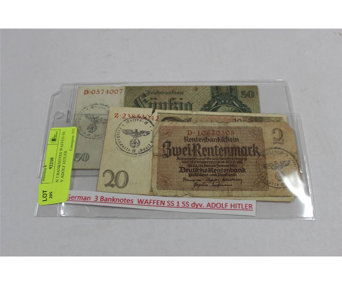 GERMAN 3 BANKNOTES WAFFEN SS 1 SS DYV ADOLF HITLER
