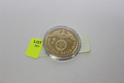 GERMAN NAZI GOLD PLATED 5 MARK REPLICA COIN