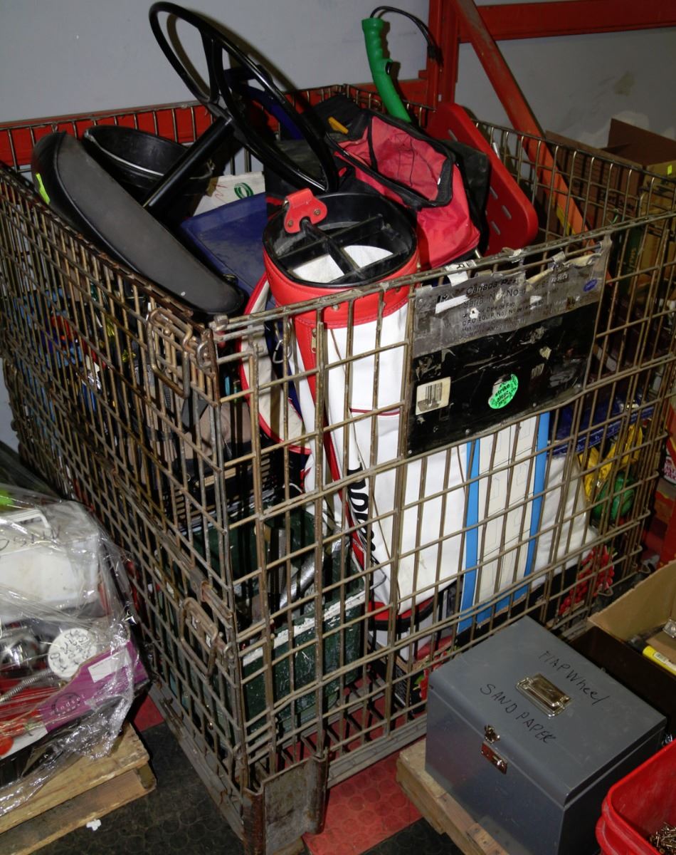 GIANT CAGE FULL OF TOOLS,WEED WHIPPER,GOLF BAG,