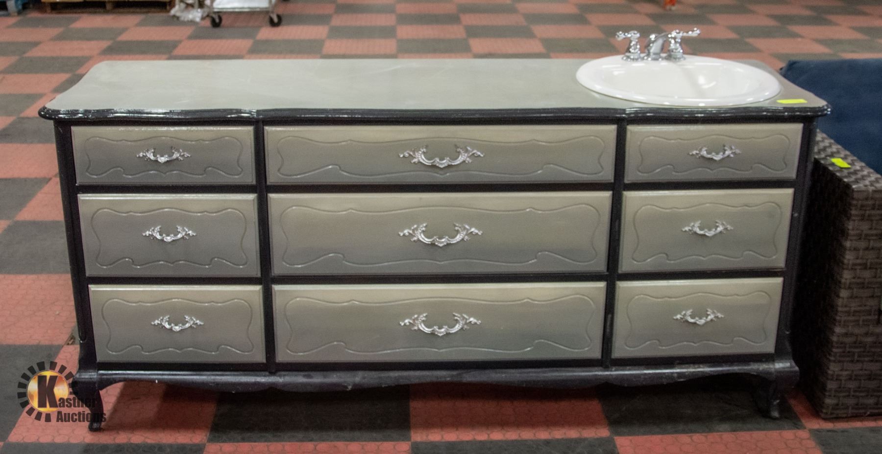 70 INCHES LONG SINK + DRAIN HOLE FOR USE AS A BATHROOM SINK + DRAWERS FOR STORAGE