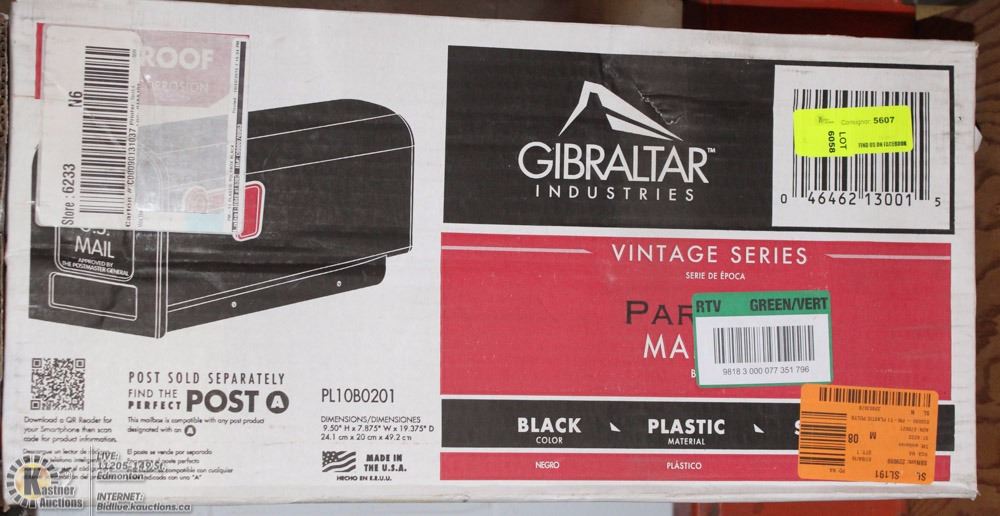 GIBRALTAR BLACK PLASTIC MAIL BOX