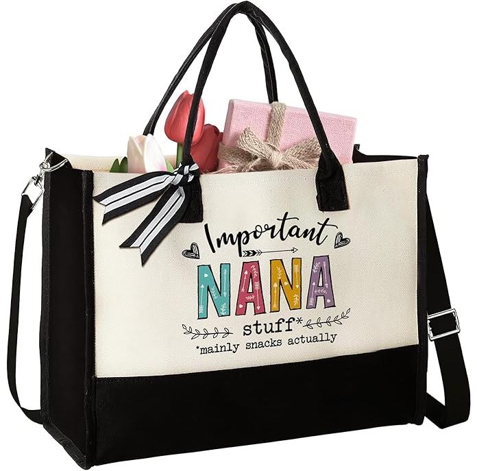 GIFTS FOR GRANDMA - UNIQUE BIRTHDAY & CHRISTMAS IDEAS: CANVAS TOTE BAG, BLACK AND WHITE, LARGE | Category: Home Goods & Décor