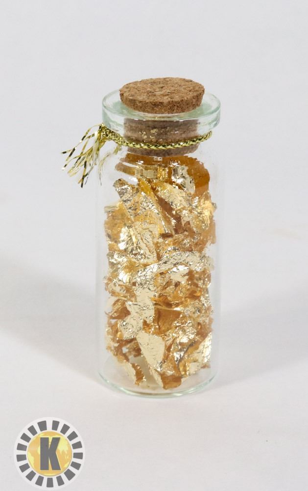 GLASS BOTTLE FILLED WITH GOLD FOIL
