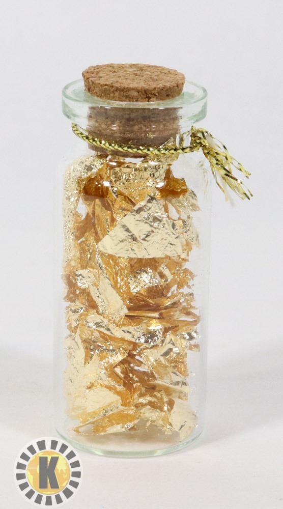 GLASS BOTTLE FILLED WITH GOLD FOIL