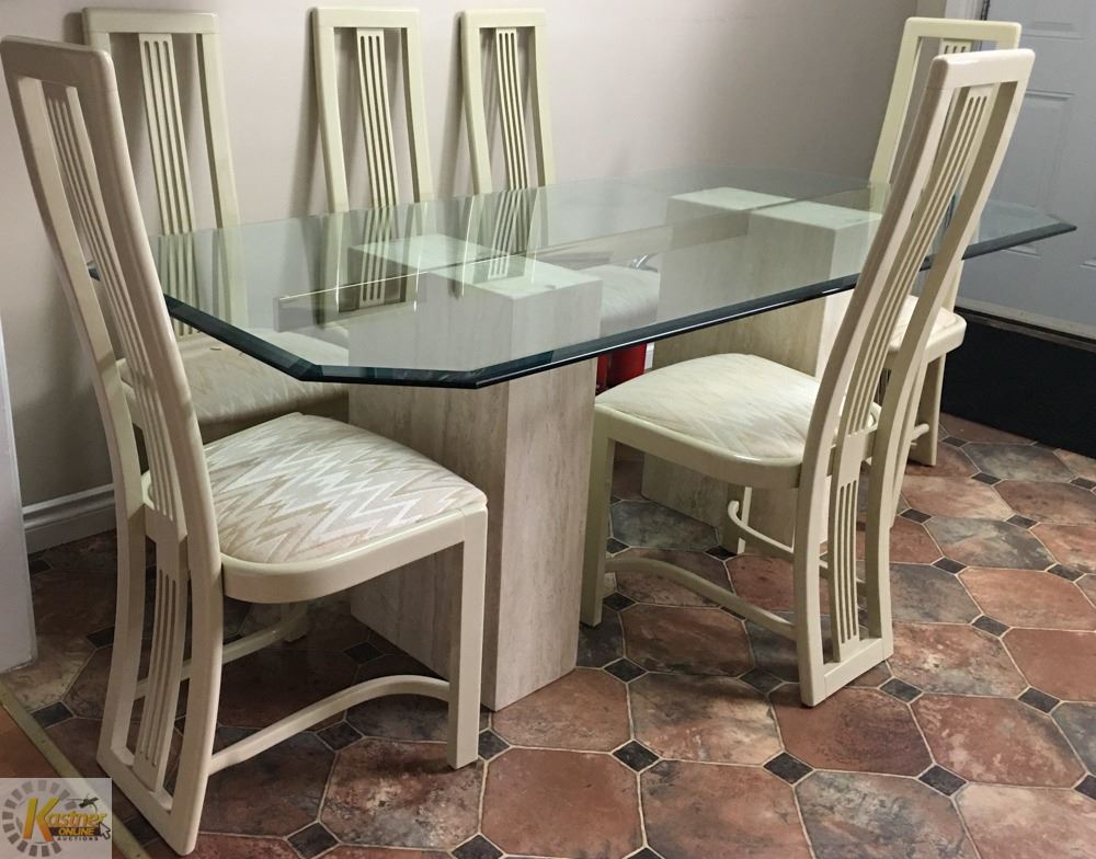 GLASS DINING ROOM TABLE AND 6 CHAIRS