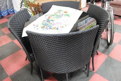 GLASSTOP RATTAN STYLE PATIO TABLE W 4 CHAIRS