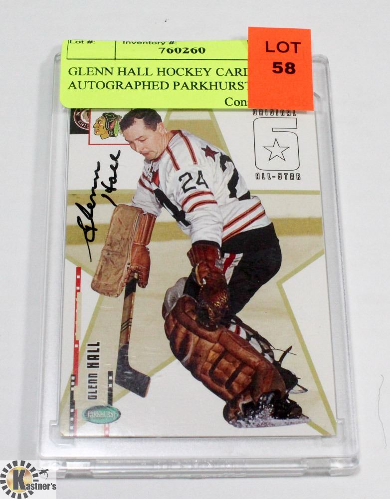 GLENN HALL HOCKEY CARD AUTOGRAPHED PARKHURST.
