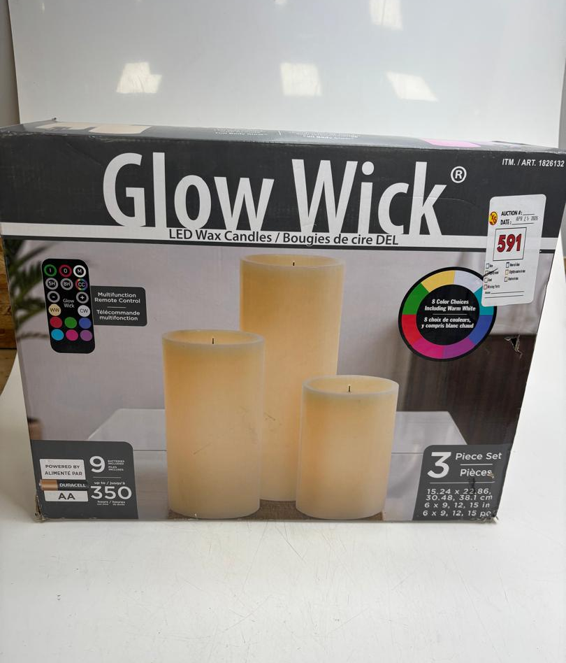 GLOW WICK LED XL COLOUR CHANGING WAX CANDLES WITH REMOTE, 3-PIECES -SU