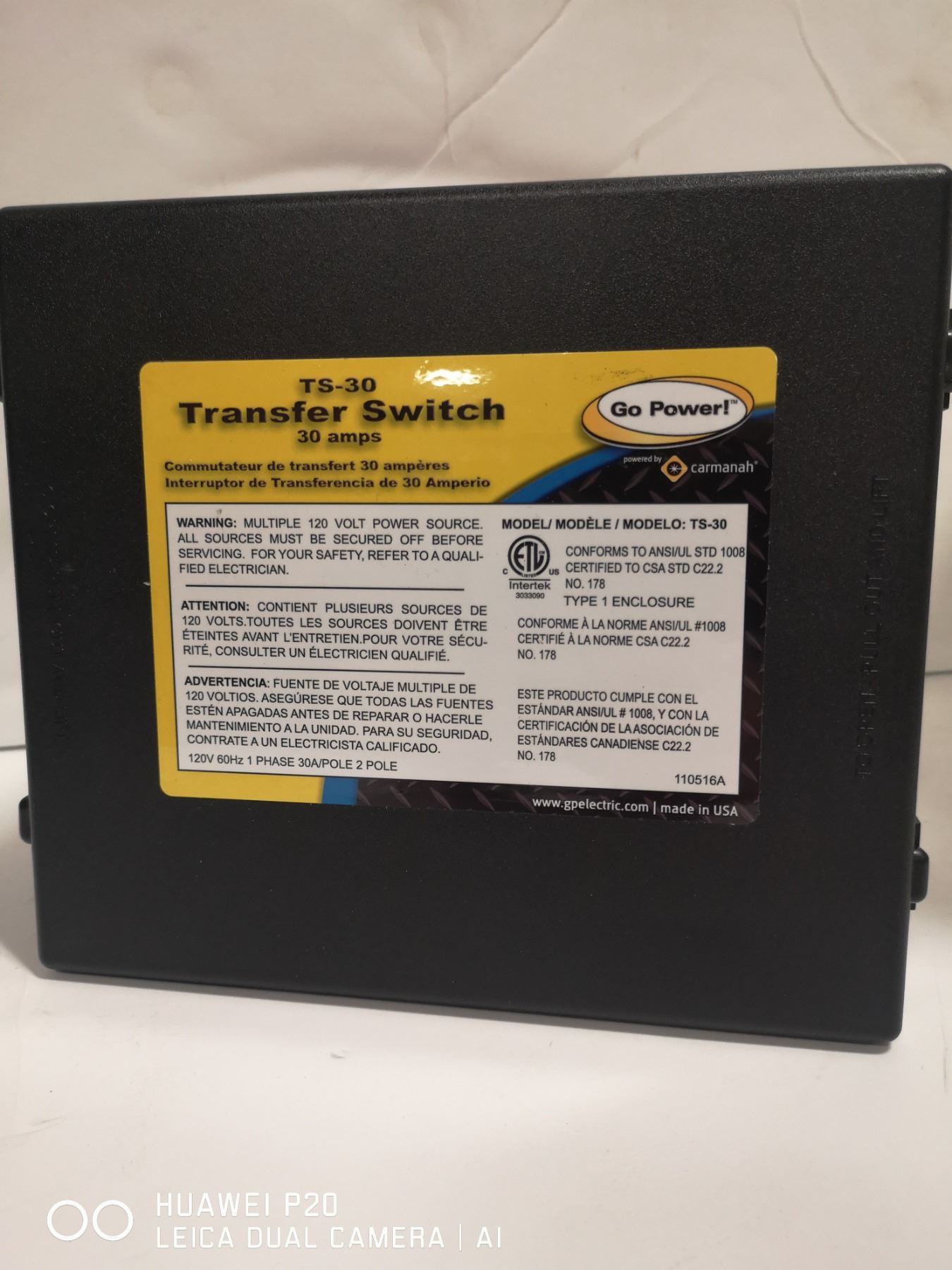 GO POWER T6-30 TRANSFER SWITCH. 30AMP