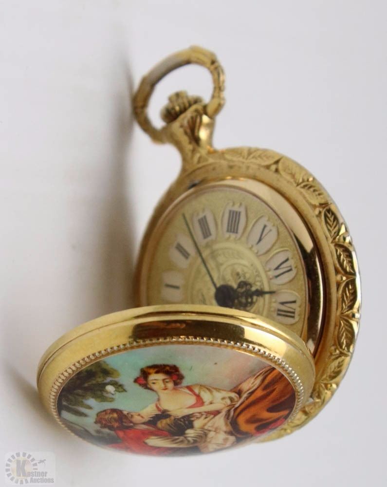 GOLD AND ENAMELED POCKET WATCH IN WORKING ORDER