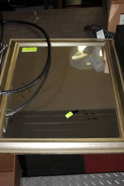 GOLD COLORED WOOD FRAMED MIRROR 20"L X 24"H