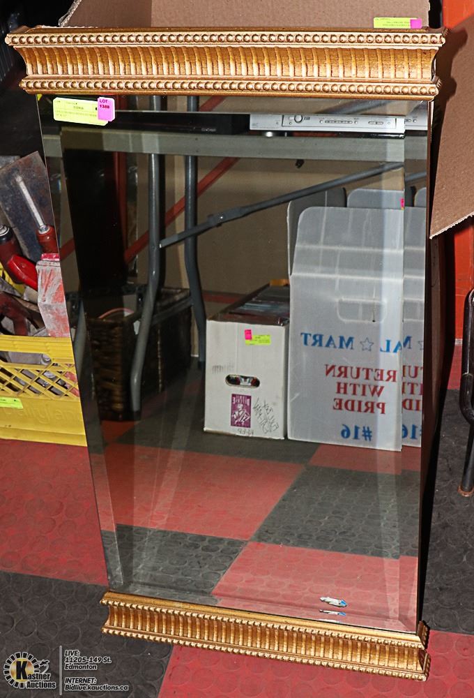 GOLD FRAMED BEVELED MIRROR, 19" X 33"