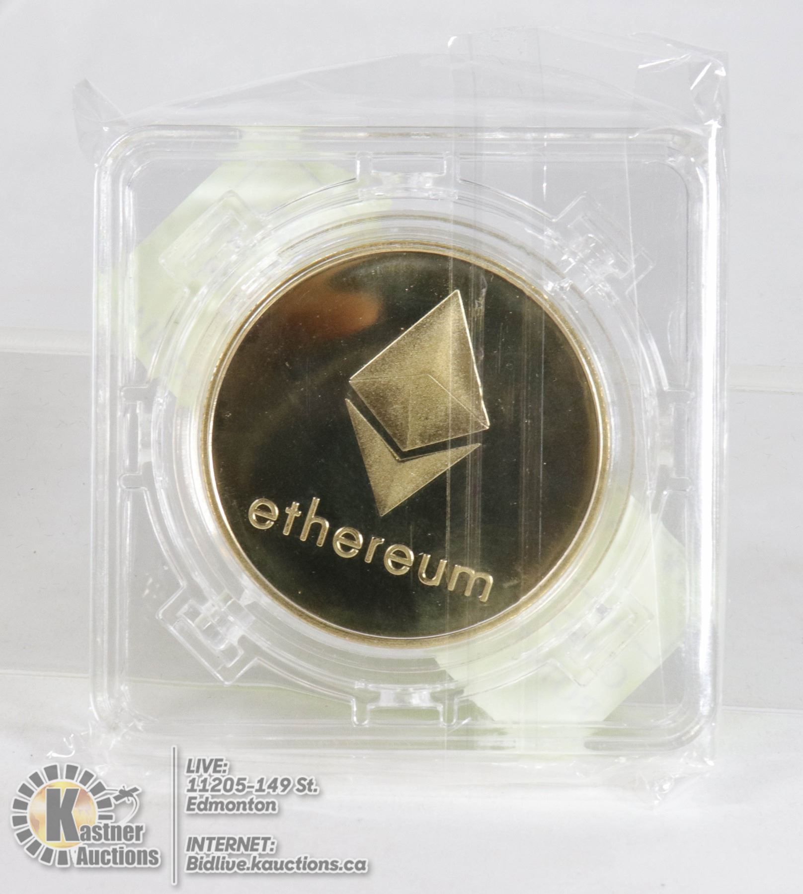 GOLD PLATED ETHEREUM COIN IN ROTATING CASE