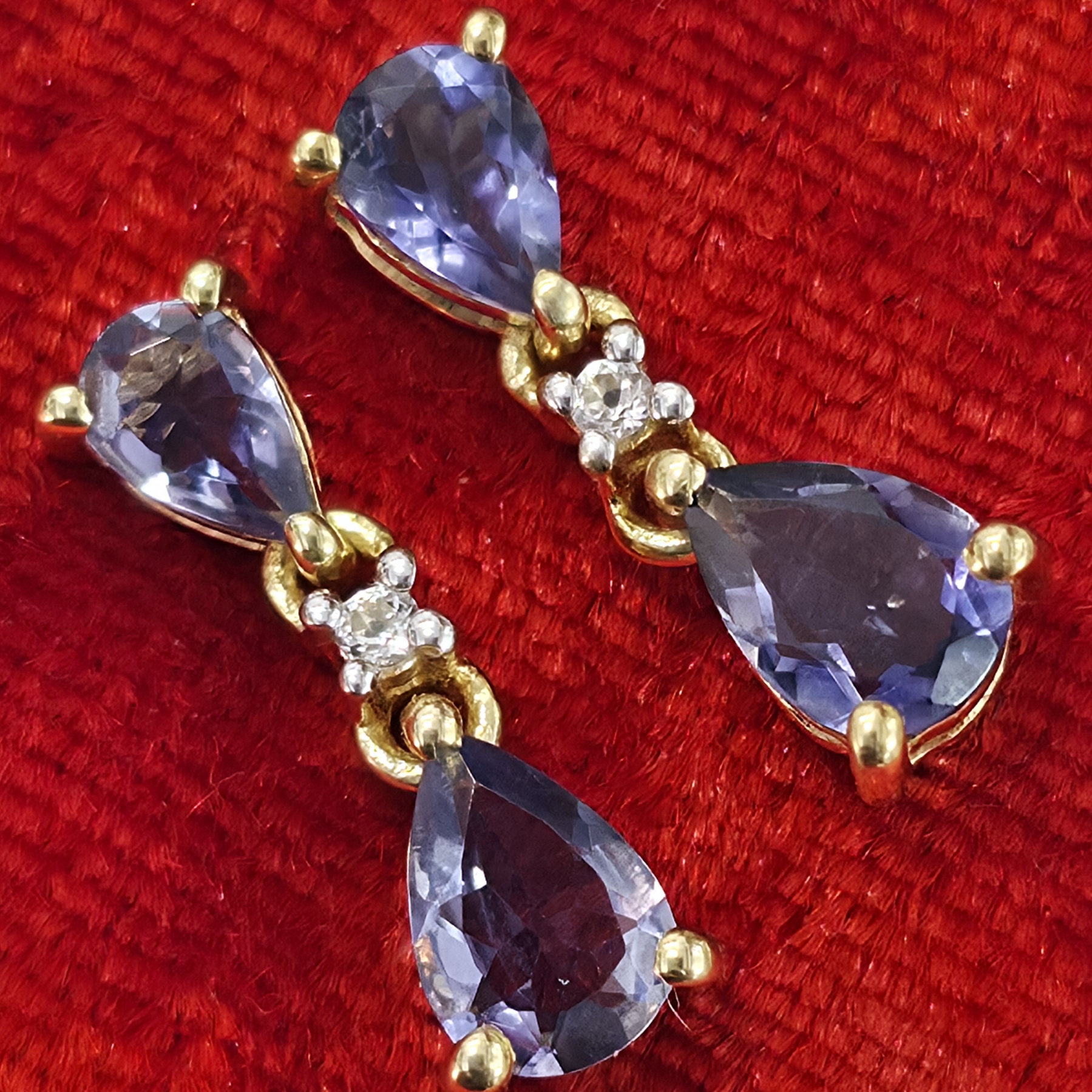 Gold plated Silver Iolite(1.8ct) Gold Rhodium Plated Earrings (~weight 2.33g)