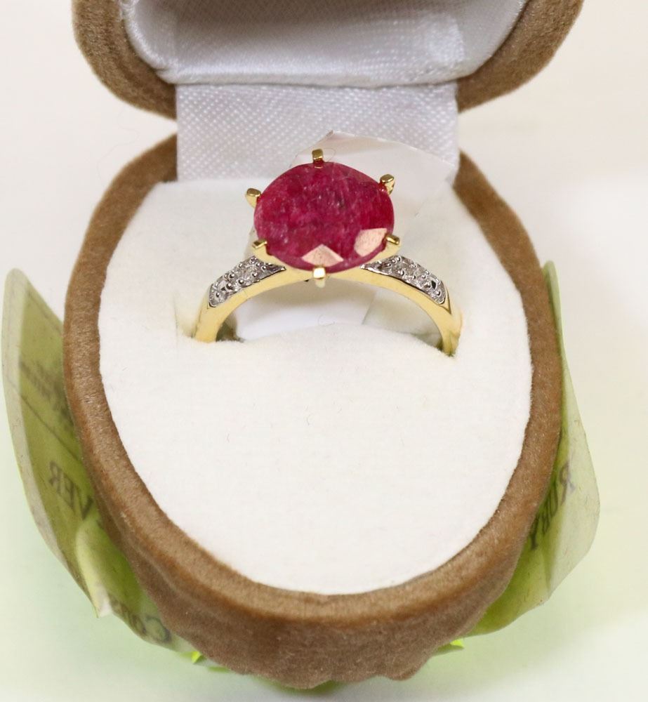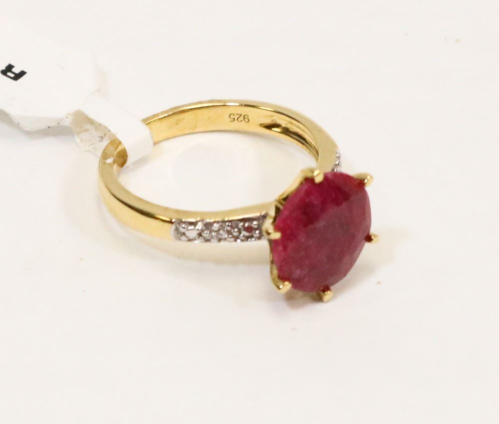 238 - JT37 - GOLD-PLATED STERLING SILVER RUBY CUBIC ZIRCONIA RING. JEWELRY