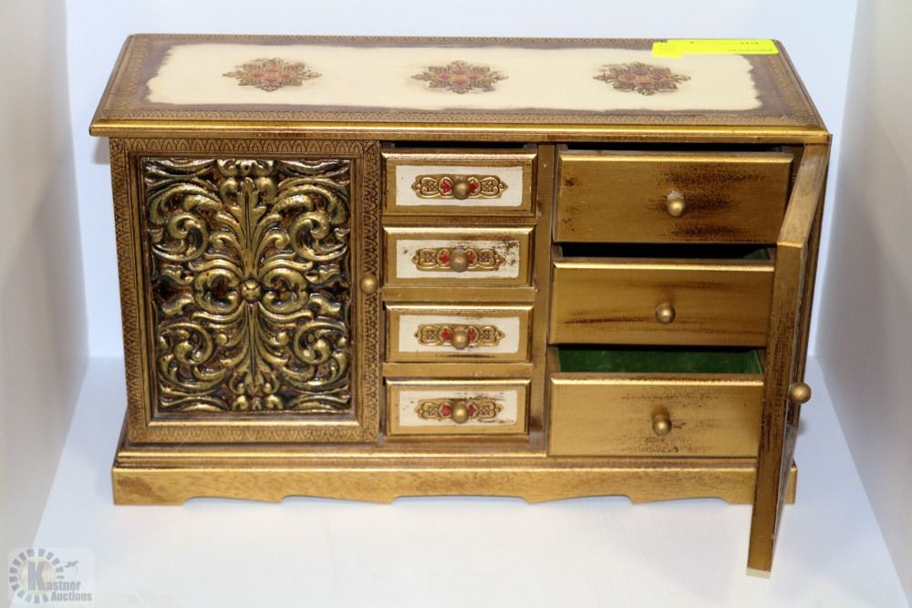 GOLD TONE HANDPAINTED JEWELLERY BOX
