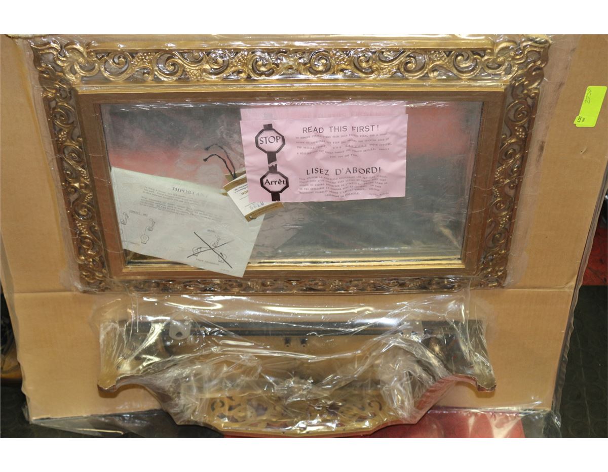 GOLD TONE MIRROR WALL SHELF