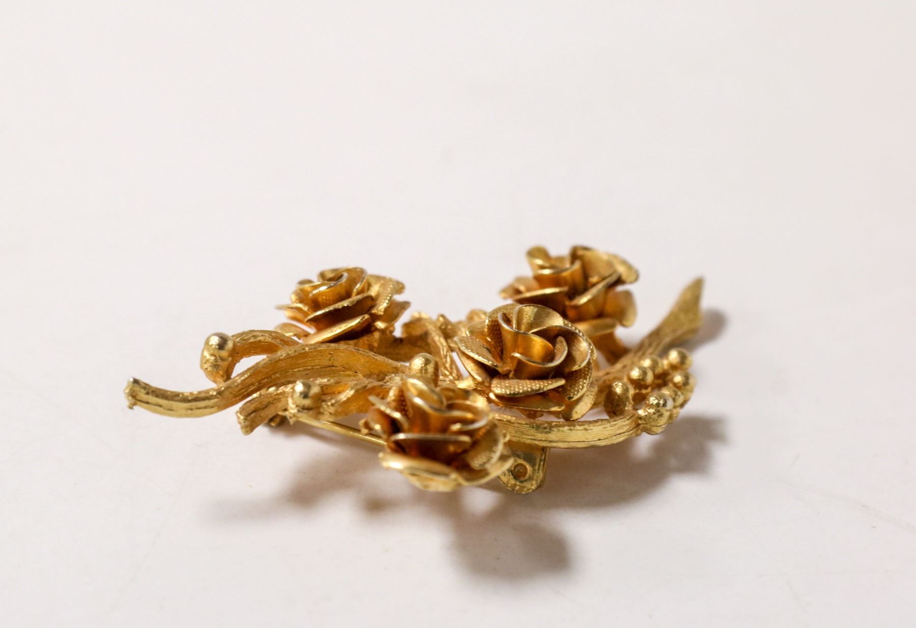 GOLD TONE ROSE BROOCH