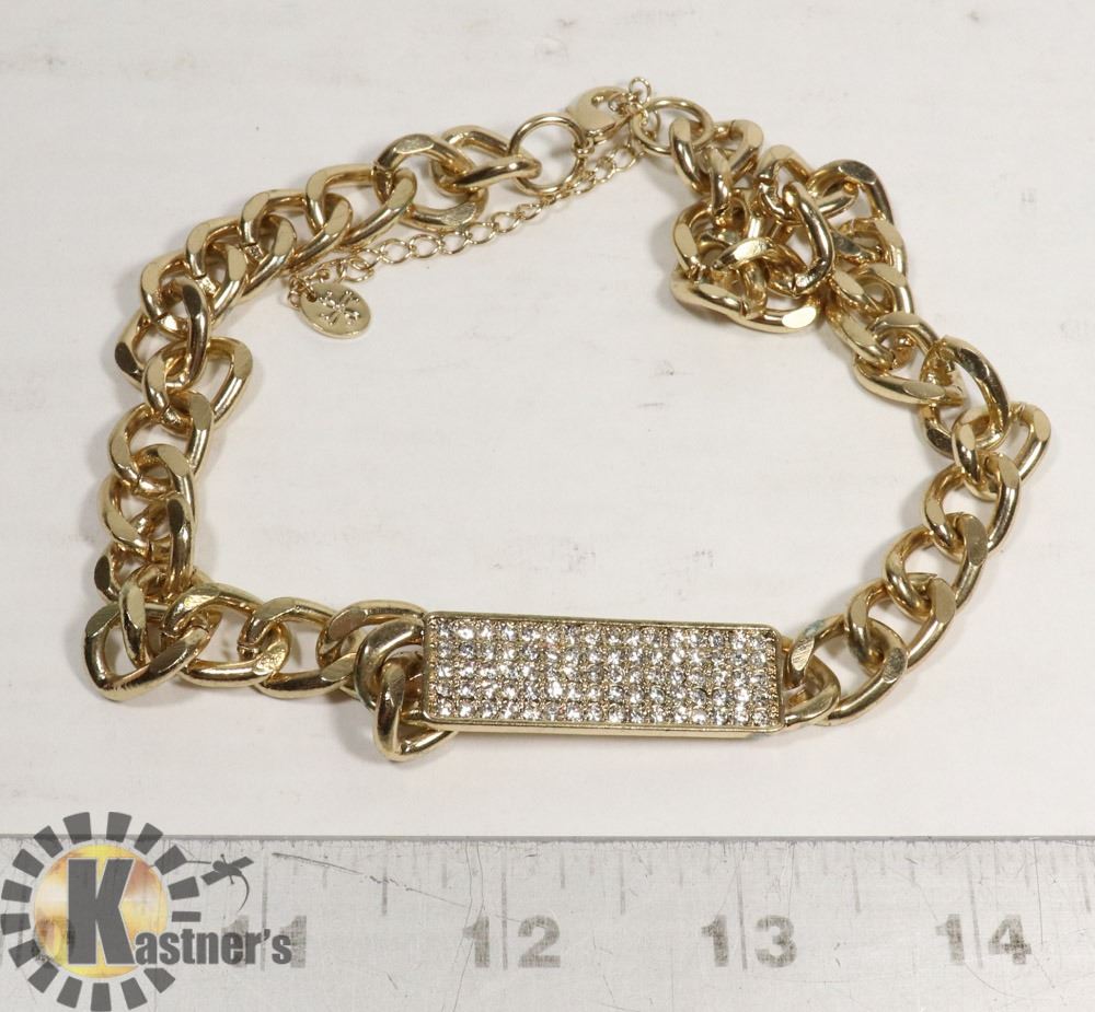 GOLDTONE AND CRYSTAL WIDE LINK NECKLACE
