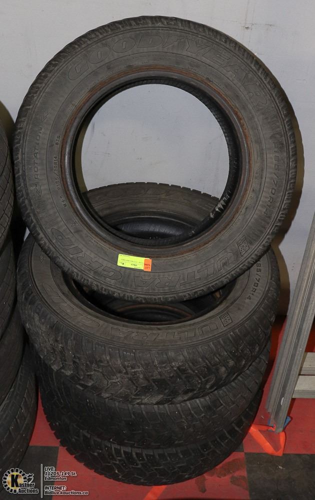 4 TIRES - P/85/TOR 14" - 2 TIRES 80% THREAD LEFT, 2 TIRES 70% THREAD LEFT.