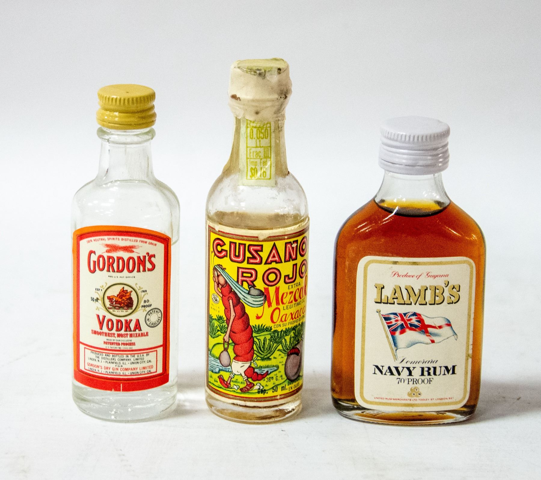 GORDONS VODKA, LAMBS NAVY, GUSANO ROJA MEZCAL
