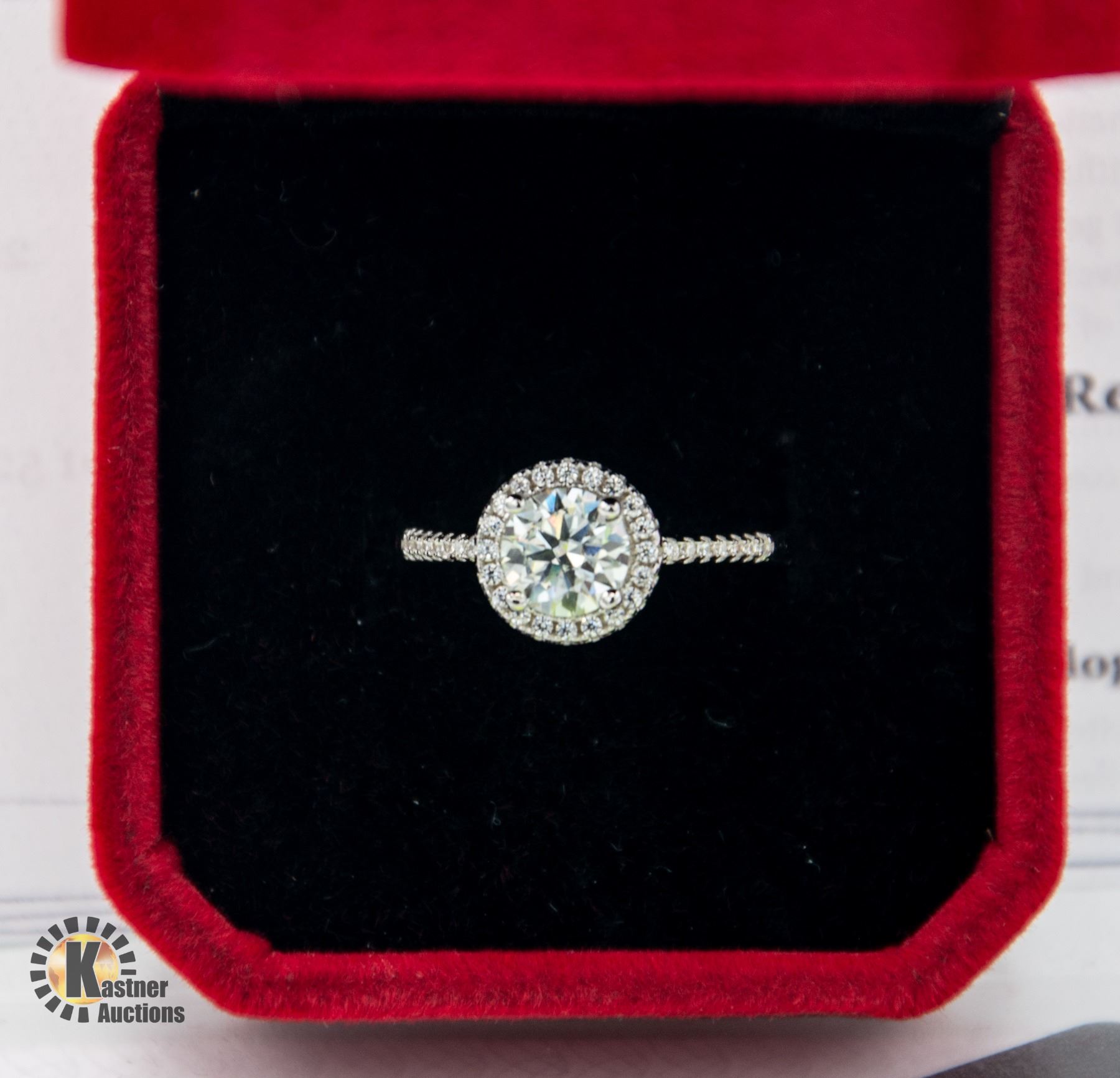 RING WITH HALO SURROUNDING, SET IN STERLING SILVER WITH CLEAR ACCENTS IN SHANK SIZE 8 APPRAISED VALUE $1,100.00 **ALL ITEMS MUST BE REMOVED BY 5PM SATURDAY, JULY 29TH 2023. ALL REMAINING ITEMS WILL BE SUBJECT TO A $6.00 PER DAY STORAGE CHARGE. ANY ITEMS REMAINING AFTER MONDAY, AUGUST 14TH, 2023 WILL BE CONSIDERED FORFEITED. NO REFUNDS WILL BE ISSUED FOR FORFEITED ITEMS. TO SCHEDULE A PICK UP APPOINTMENT CLICK HERE