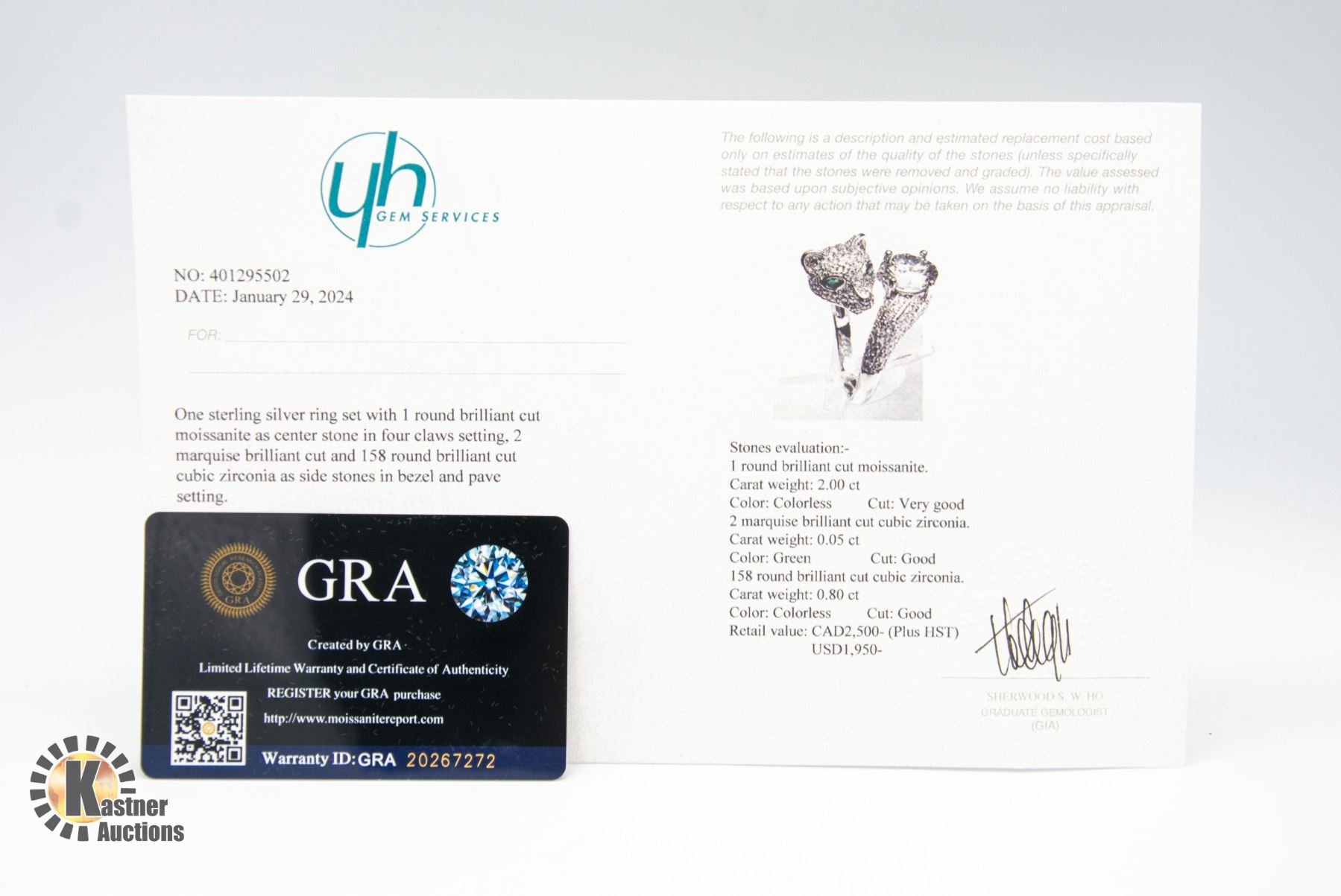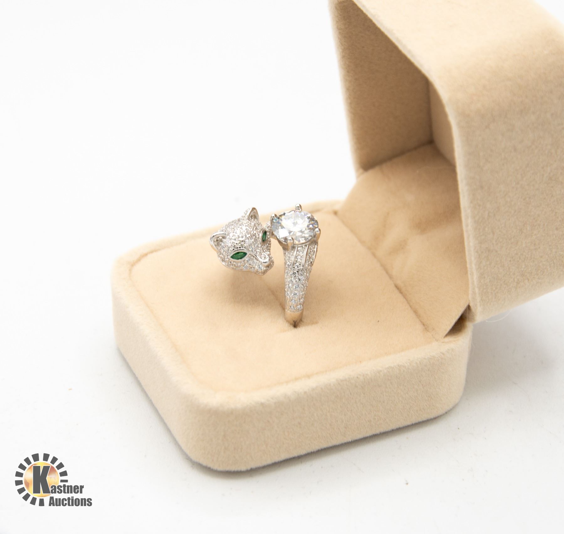 WITH 2 MARQUIS SHAPED CUBIC ZIRCONIUM WITH 158 ROUND CUBIC ZIRCONIUM WEIGHING A TOTAL ESTIMATED 0.80 CARAT SET IN STERLING SILVER RING SIZE IS ADJUSTABLE APPRAISED VALUE $2,500.00 UNKNOWN APPRAISER AT KASTNER AUCTIONS USE YOUR OWN JUDGEMENT **ALL ITEMS MUST BE REMOVED BY 5PM SATURDAY, FEBRUARY 17TH 2024. ALL REMAINING ITEMS WILL BE SUBJECT TO A $6.00 PER DAY STORAGE CHARGE. ANY ITEMS REMAINING AFTER MONDAY, MARCH 4TH, 2023 WILL BE CONSIDERED FORFEITED. NO REFUNDS WILL BE ISSUED FOR FORFEITED ITEMS. TO SCHEDULE A PICK UP APPOINTMENT CLICK HERE