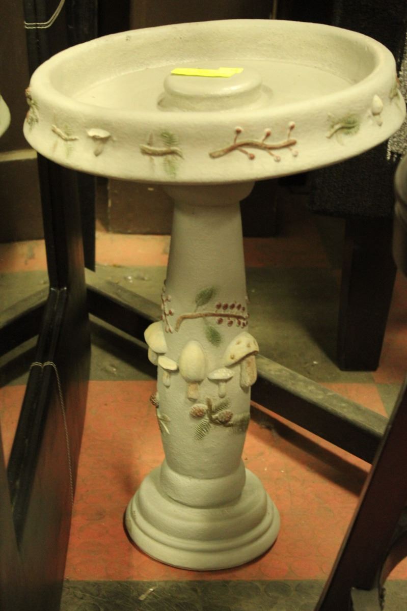GRAY MUSHROOM CONCRETE 16" BIRD BATH