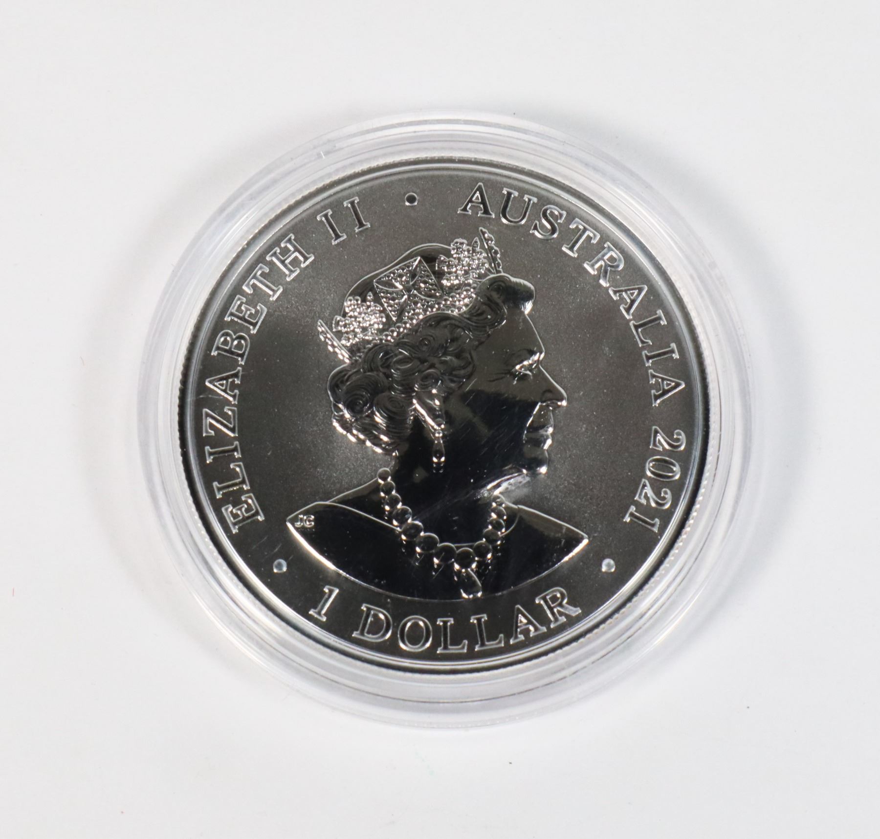 2021 1-OZ PURE SILVER BULLION CION IN CAPSULE. ROYAL AUSTRALIAN MINT. SECOND IN SERIES