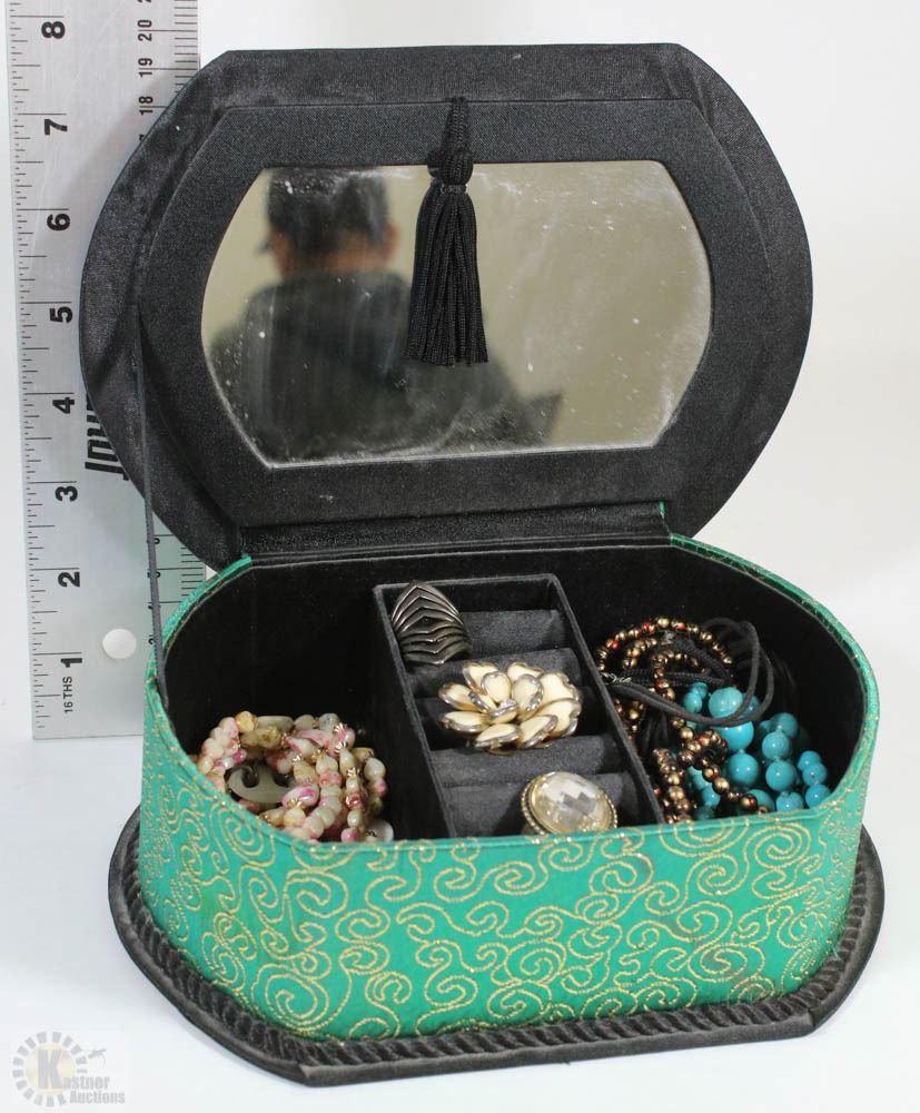 GREEN AND BLACK JEWELRY BOX FILLED WITH FASHION
