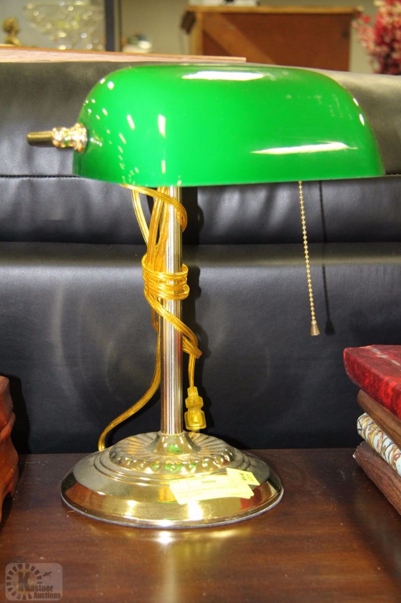 GREEN AND BRASS EXECUTIVE DESK LAMP