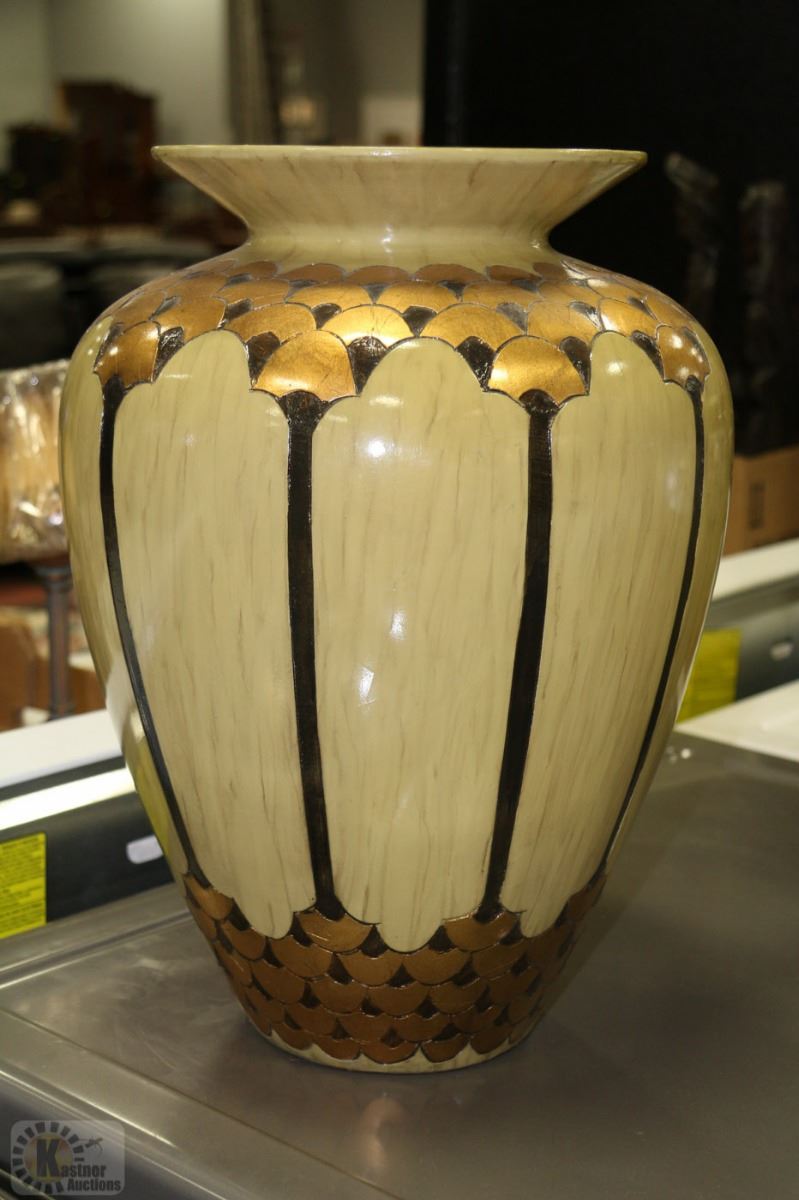 GREEN & GOLD LEAF VASE 16"H
