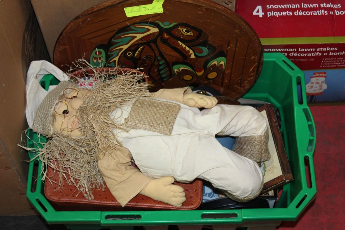 GREEN PLASTIC TUB OF MISC. ITEMS