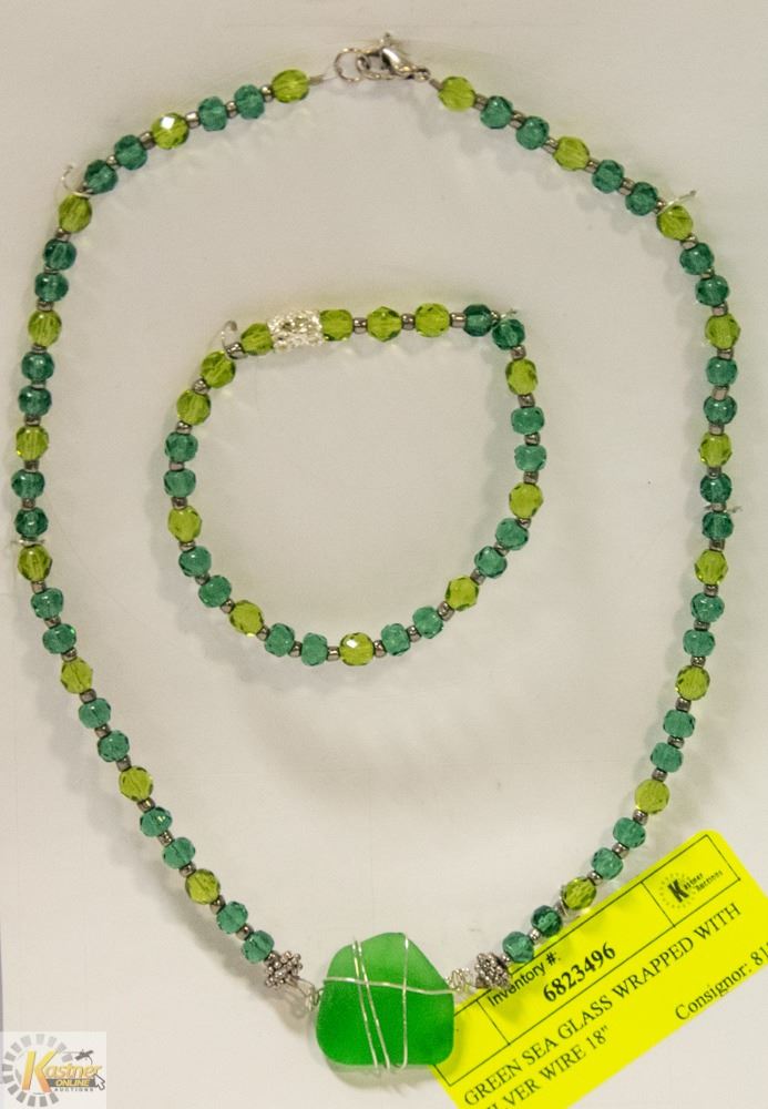 NECKLACE 8" BRACELET. 2 TONE GREEN GLASS BEADS ON SILVER WIRE. SILVER ACCENT BEADS. ARTISAN ONE OF A KIND