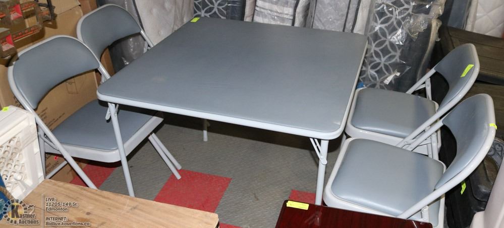 GREY FOLDING CARD TABLE WITH 4 CHAIRS