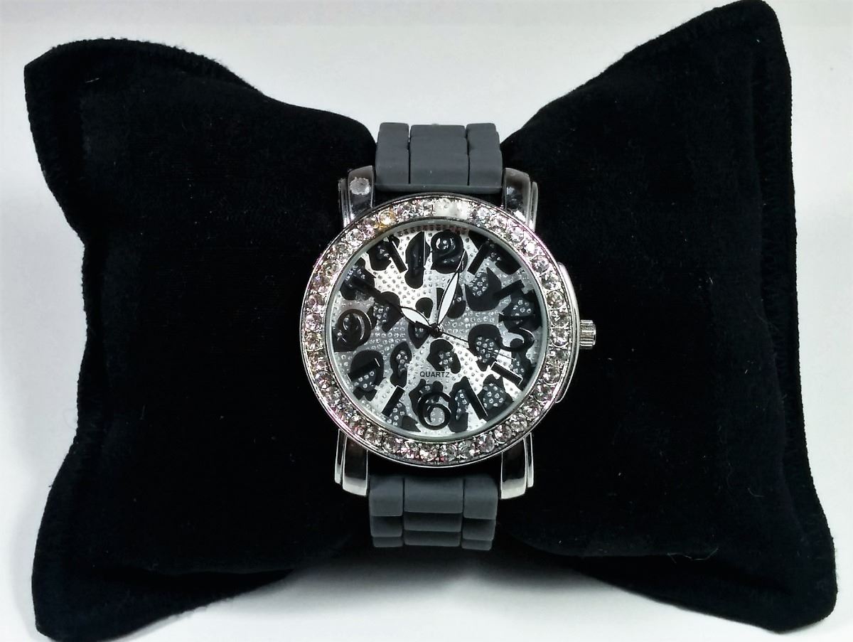 BEZEL IS CRYSTAL ENHANCED, GREY GEL BAND, 2ND HAND SWEEP NEW BATTERY